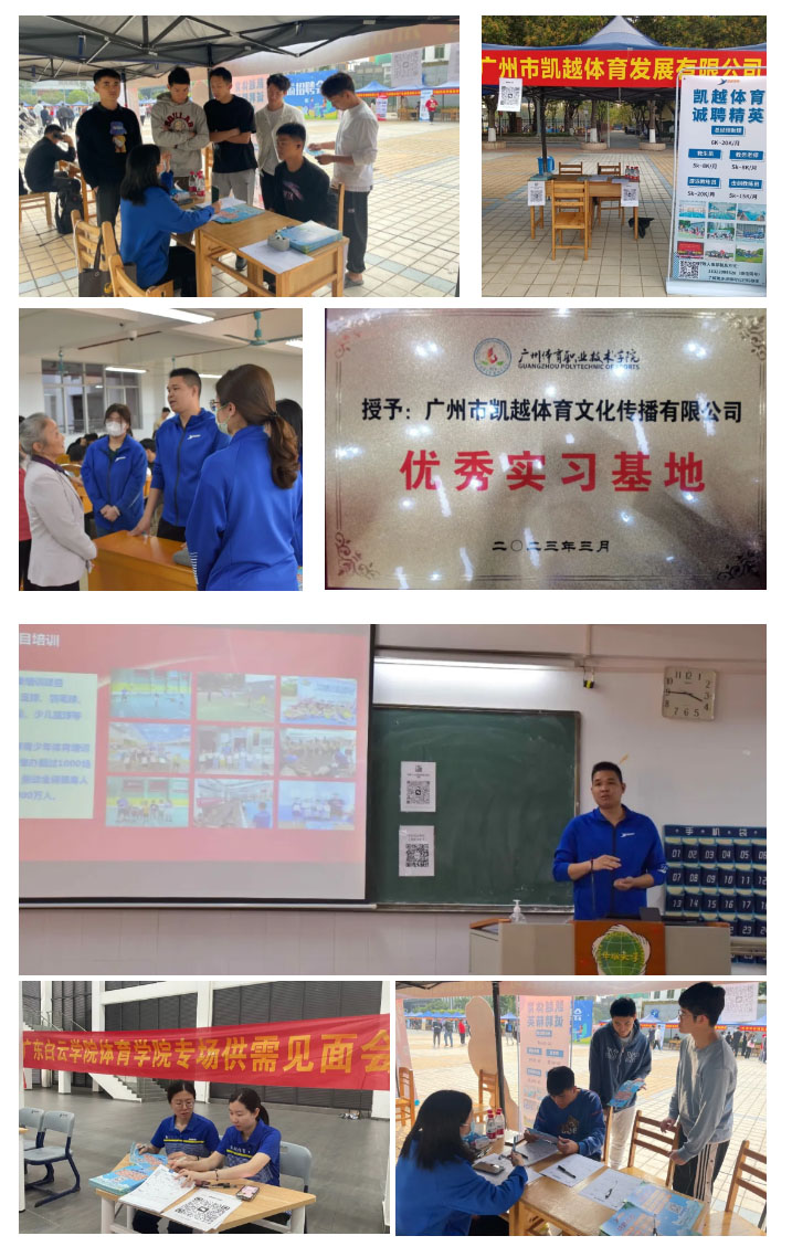 凱越體育是廣州市名列前茅的企業(yè),與廣州體育學(xué)院、廣州體育職業(yè)技術(shù)學(xué)院、廣東白云學(xué)院、私立華聯(lián)學(xué)院等高校開展校企合作,為高校體育人才提供就業(yè)機(jī)會(huì)。