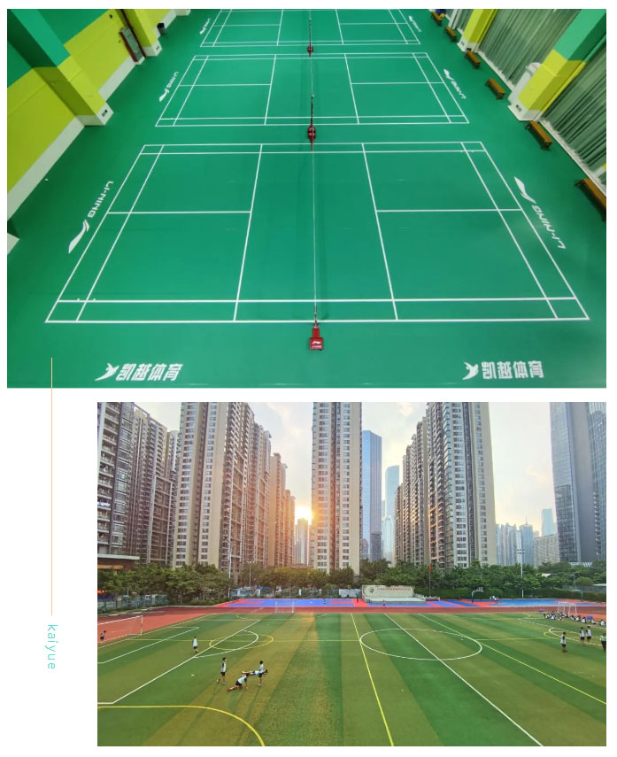 凱越體育獵德實驗學校運動中心擁有標準七人制足球場,兩個室外籃球場,四片標準室內羽毛球場。公司教育理念:“始終把孩子體育教育放在第一位”,我單位將嚴格按照學校要求,助力學校開展體育特色課程,培養學生體育運動興趣,提高體育特色項目的運動水平,將學校特色項目繼續發展壯大。